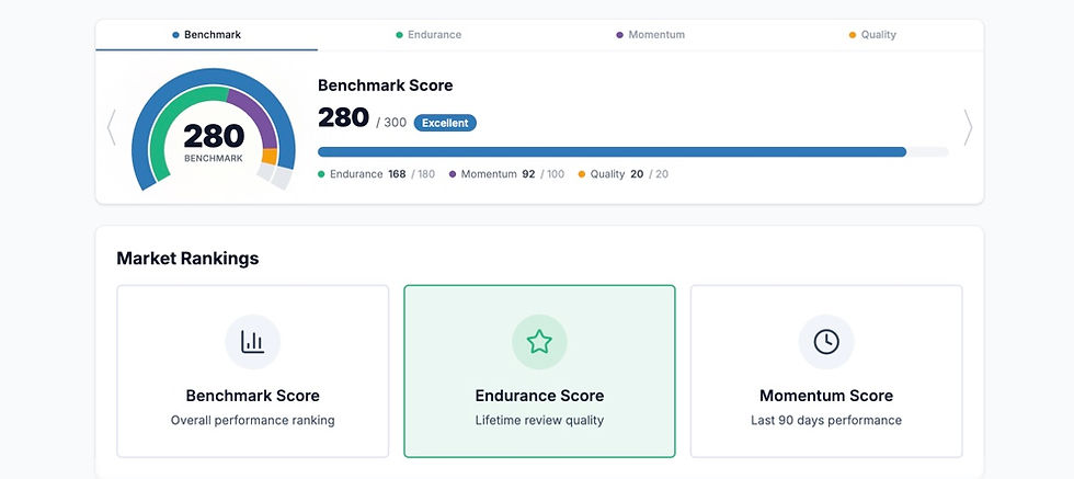 Endurance Score — consistency and quality of reviews over the entire period of operation